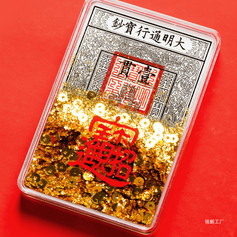 晋礼山西文創大明通行大清宝札アクリル流砂日進闘金入宝冷蔵庫貼り