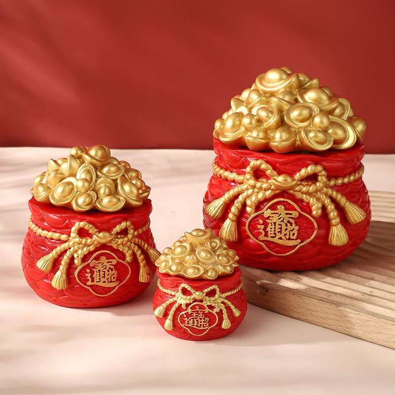 聚宝盆銭袋は自動車樹脂を取り外して新年の国潮金元宝福袋のデスクトップ装飾工芸品を飾ることができる