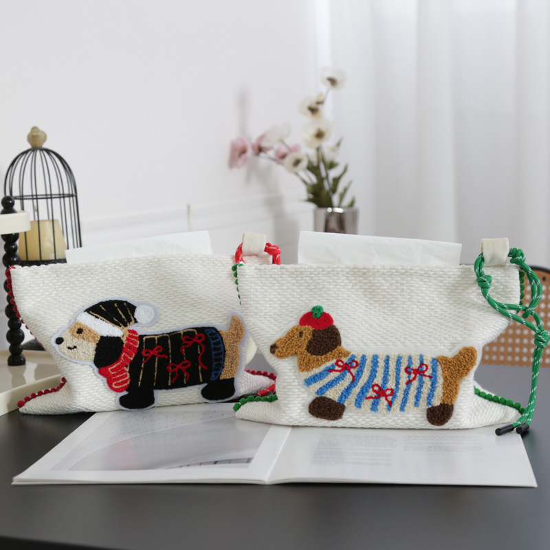美作要素デザインソーセージ犬ウール布芸客間修理犬ティッシュケース寝室引き出し箱車載ティッシュバッグ