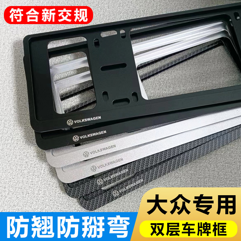 新しい交通規制に準拠したフォルクスワーゲンの二重層ナンバープレートフレーム、カーボンファイバーパターンの車の新エネルギーナンバープレートカバーに適しています。