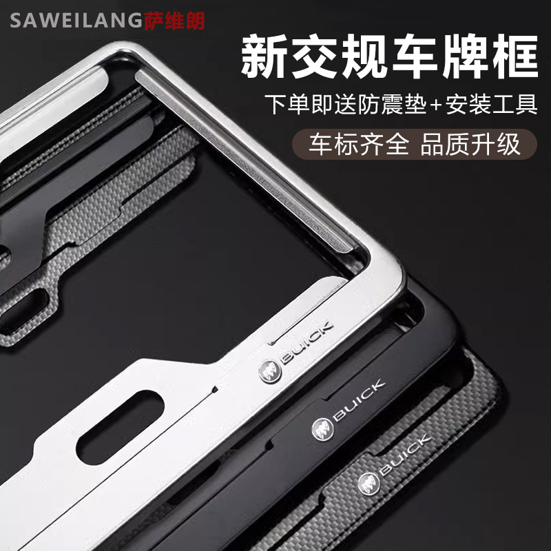 Buick Yinglang 新エネルギーナンバープレートフレームナンバープレートフレーム保護フレームブルーブラックカーボンファイバー破損防止アルミニウム合金に適しています。