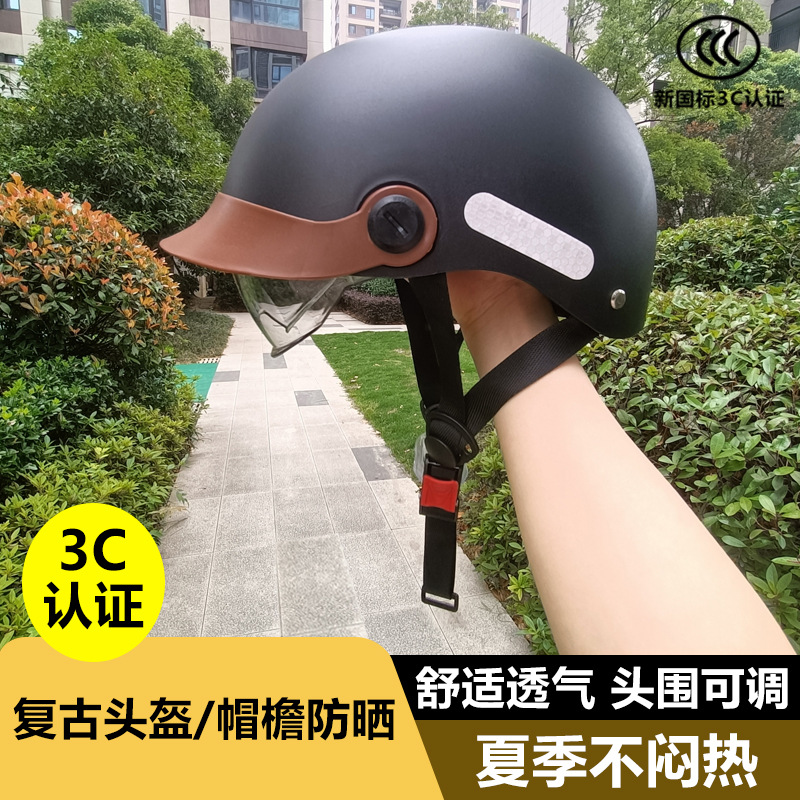 新しい国家標準 3C 認証夏レトロハーフヘルメット電動バッテリーカーヘルメット男性と女性のためのオールシーズン通気性のある軽量ヘルメット