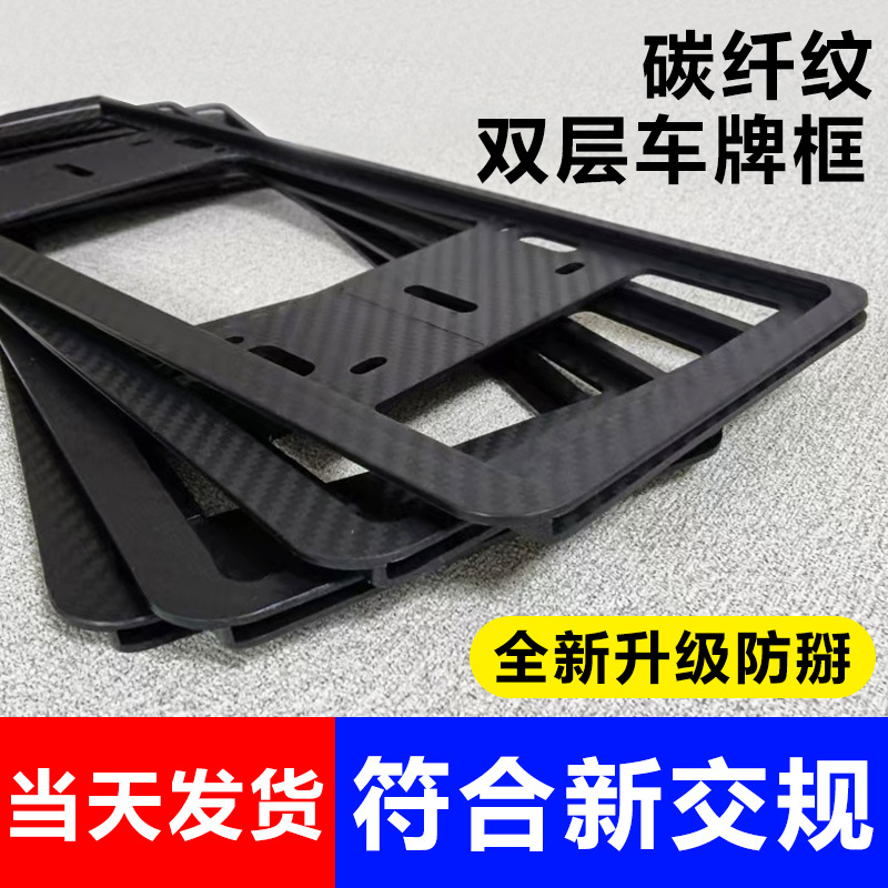 厚みのあるカーボンファイバーパターンのナンバープレートフレームボーダー車のナンバーブルーナンバープレートフレーム新しい交通規則新エネルギーナンバープレート保護カバー
