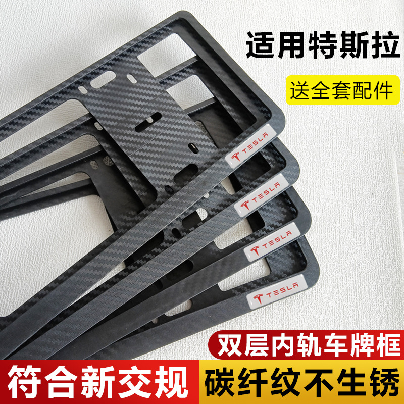 テスラモデル 3 モデル Y 新エネルギーナンバープレートフレームカーボンファイバーパターン二層ブルーナンバープレート保護フレームに適しています