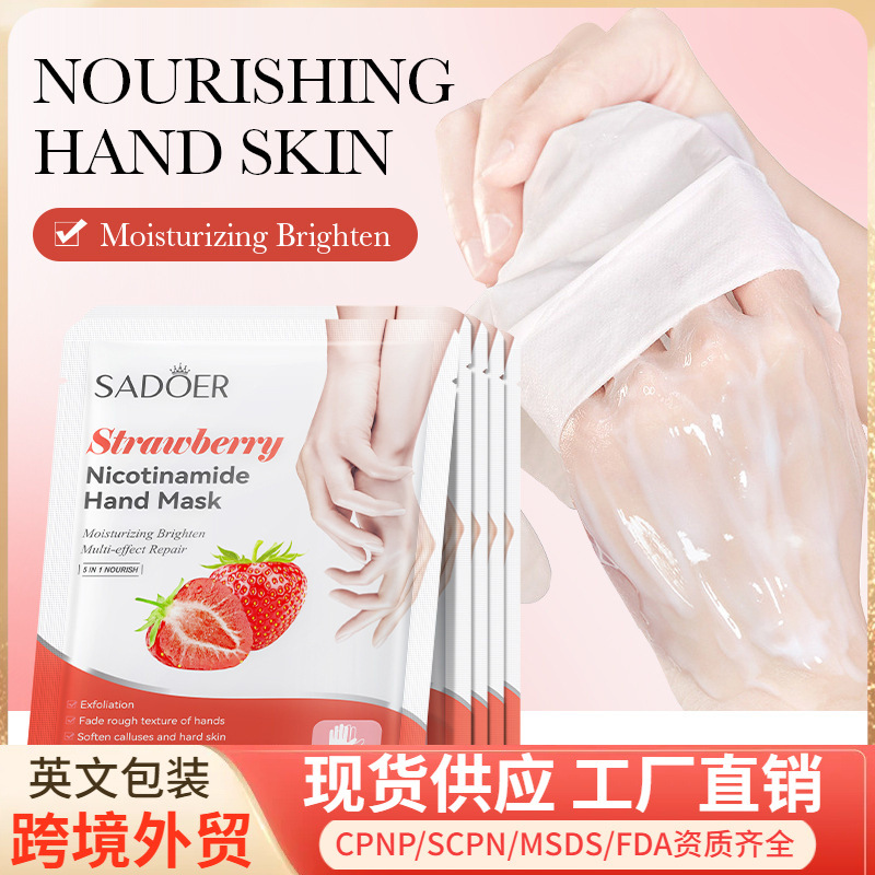 全英語sadoerいちごニコチン酸アミド柔らかい光沢手膜潤い保湿若肌手袋クロスボーダー卸売り