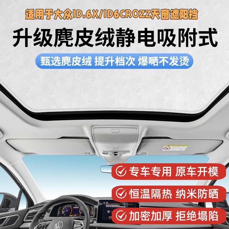Volkswagen ID.6X/ID6CROZZ スエード静電吸着サンルーフ日焼け止め断熱サンシェードサンシェードに適しています。