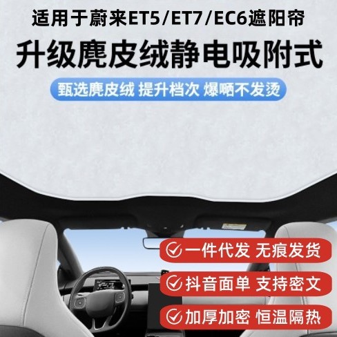 適用蔚来et5/ec6/et7スエードの静電気吸着天窓の日よけカーテンの日焼け止め断熱部品