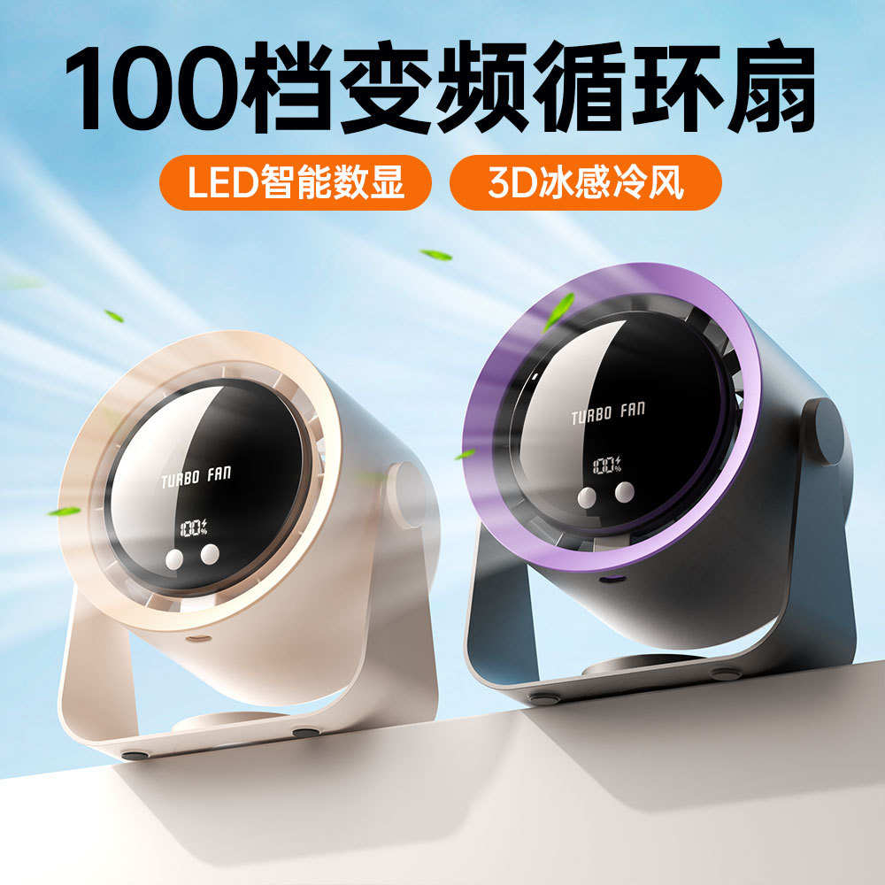 クロスボーダー新型循環扇風機家庭用usb充電デジタル表示デスクトップターボ小扇風機壁掛け式小型扇風機