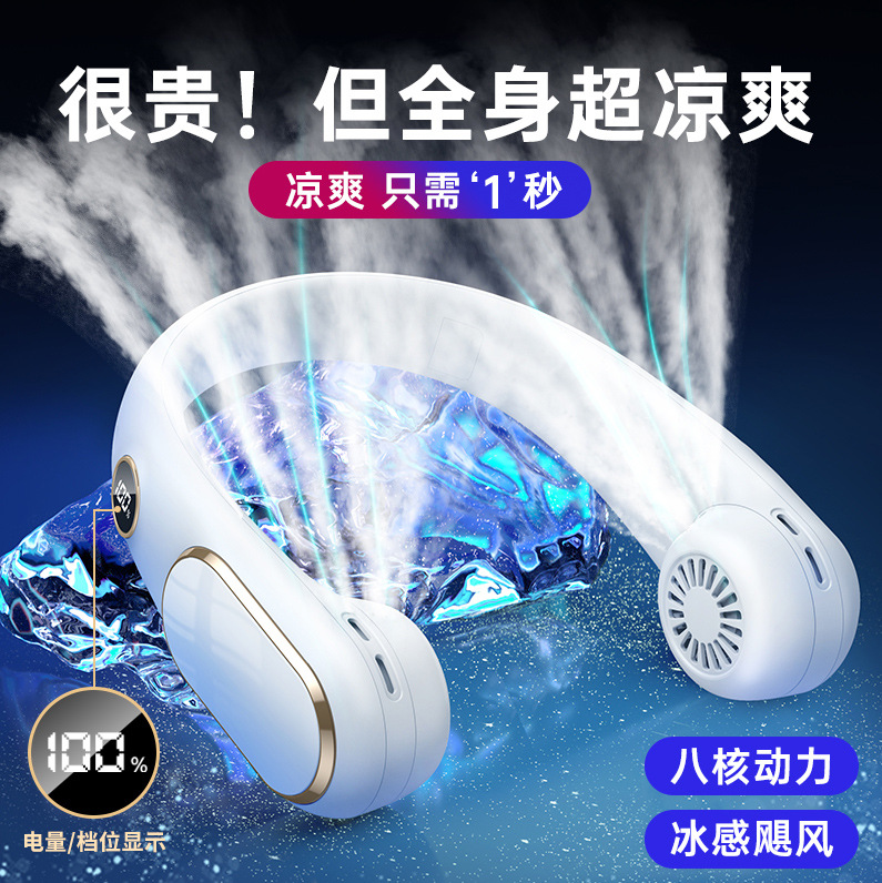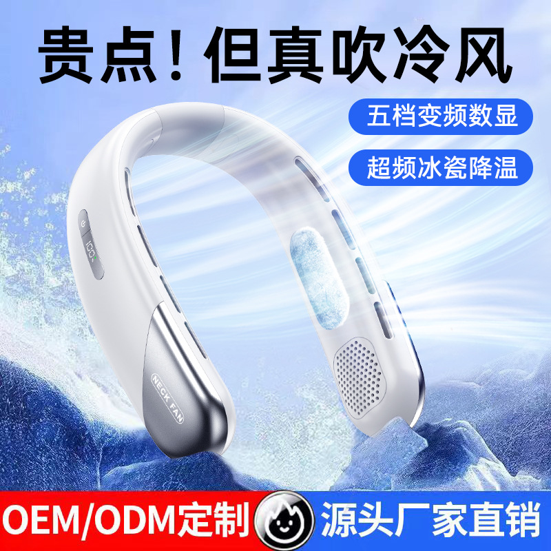 2024 新しいクロスボーダーブレードレスホルターファン USB 充電デジタルディスプレイサイレント屋外ポータブルミニファン