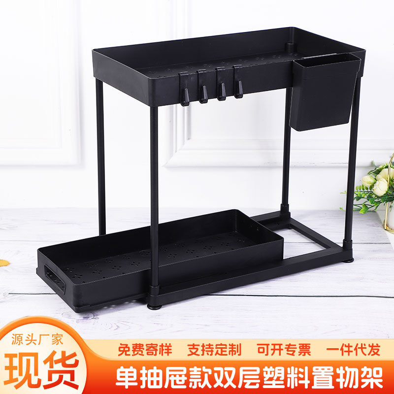 二層キッチンとバスルームのスパイスラック排水収納ラックプラスチックシンク収納ラック調味料ラックデスクトップ収納ラック収納ラック