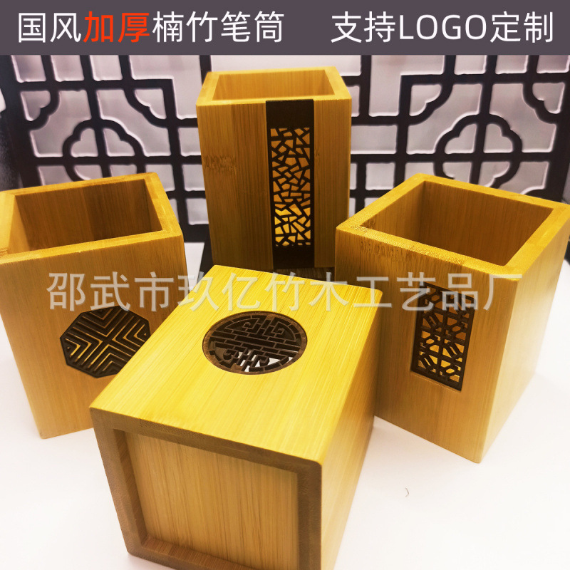 中国風レトロ竹製透かし彫り筆筒収納軽豪華スタイルオフィスデスクトップ置物創意シンプルデザイン