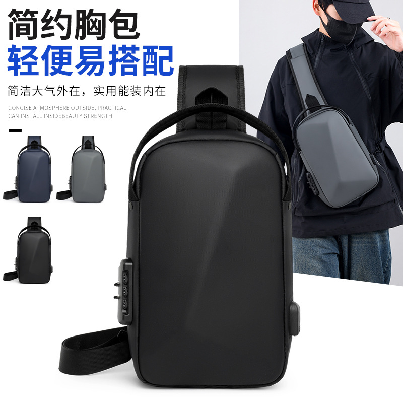 メンズシェイプチェストバッグ、撥水レザーフィルム、盗難防止、ビジネスショルダーバッグ、カジュアルシンプルクロスボディバッグ、多機能クロスボーダー