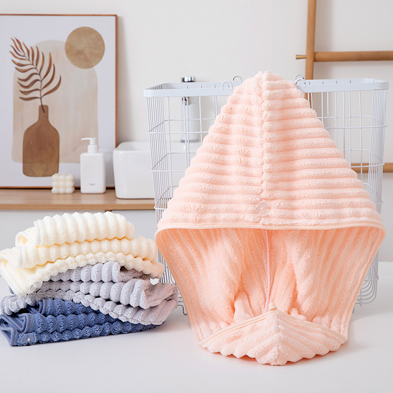 珊瑚の絨毯の無地の色は条の乾いた髪の帽子を引き出して吸水します。