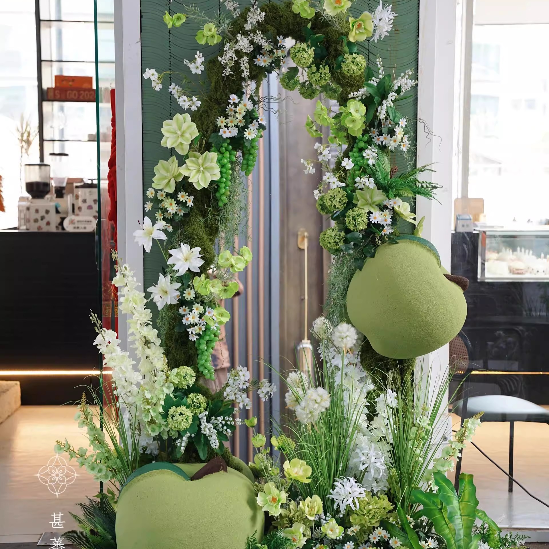 コーヒーショップの春夏の雰囲気アレンジメント、フォレストスタイルの全身鏡、苔の微小風景、特殊な形の鏡、フラワーショップの写真撮影