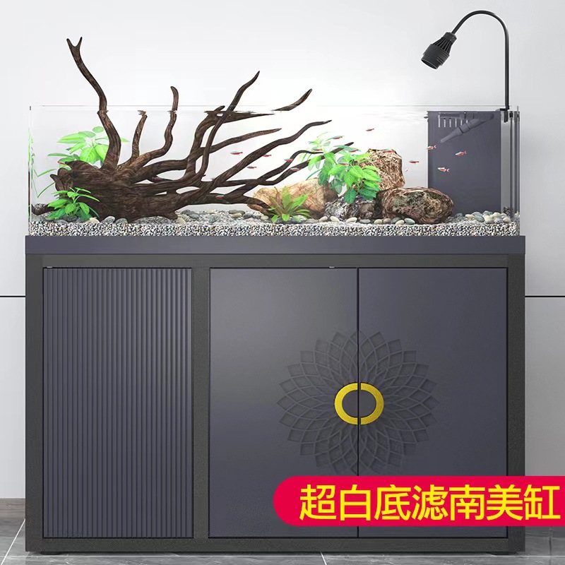 ストリームタンク水槽水族館タイプ水草タンク白ガラスリビングルーム交換不要水中フィルターキャビネット付き