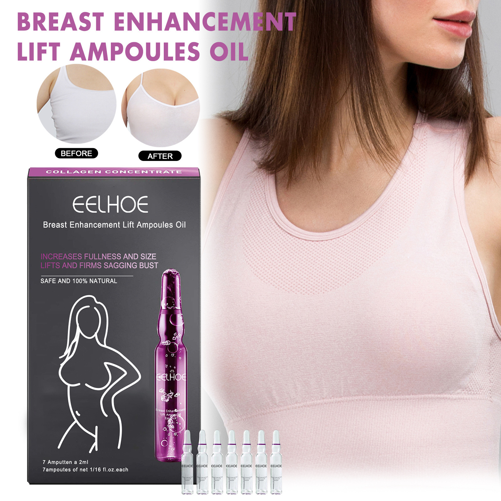 EELHOE バスト アンプル エッセンス 優しく保湿し、胸を引き締め、ふっくらとリフトアップするバストケア エッセンス