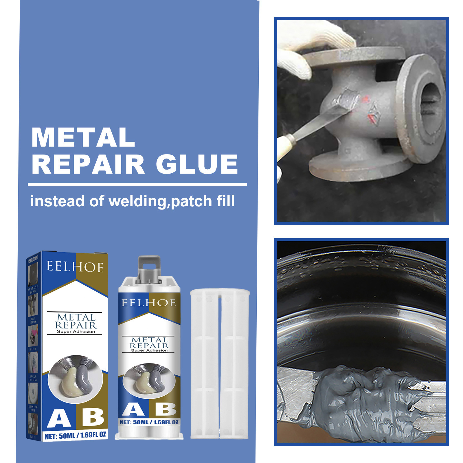 EELHOE メタル AB ガイドグルー、高温耐性溶接、亀裂充填、漏れ防止、速乾性金属修理剤