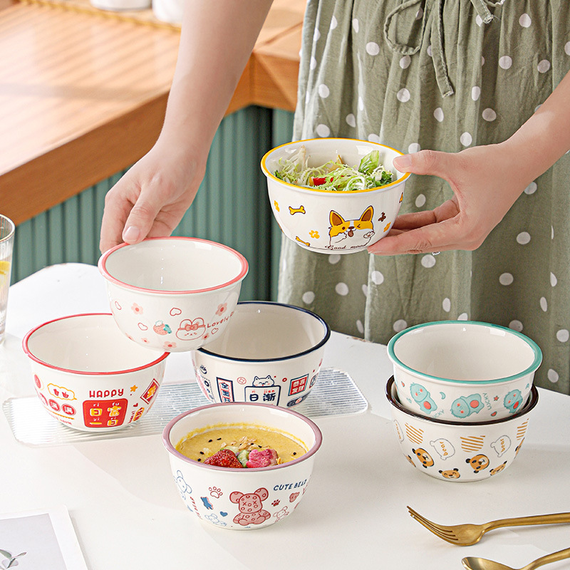 セラミックボウル漫画家庭用食器かわいいライスボウル朝食ボウル子供用ボウル高外観と耐高温性 2023 Huagen