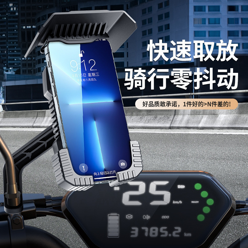 クロスボーダーのオートバイの携帯電話のスタンドの電動のバッテリーの踏み台の車の防振のテイクアウトの自転車のナビゲーションの車載のスタンドの震え品