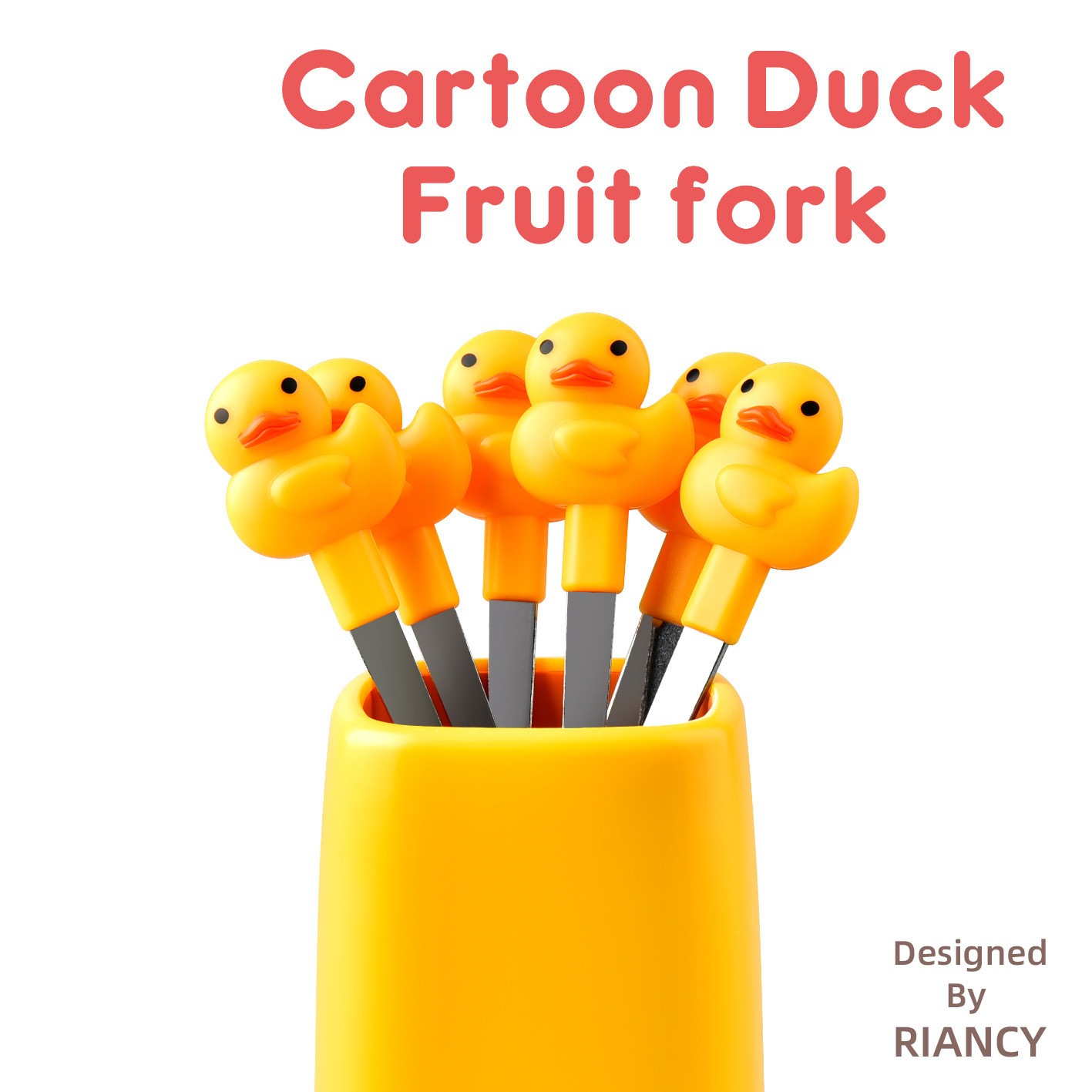 国境を越えたアニメのアイデアrb706達客鴨果物フォークセットステンレスケーキフォーク小黄鴨家庭用サイン