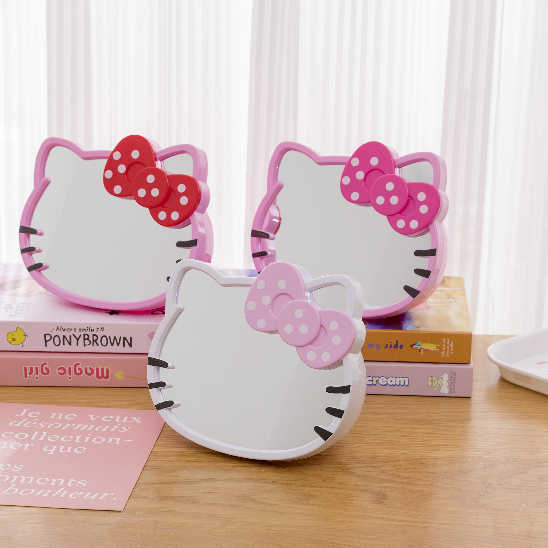 HL-09の新しい漫画のkittyの猫の台の鏡の収納箱のデスクトップのかわいい蝶結びの化粧の鏡の雑物は収納します。