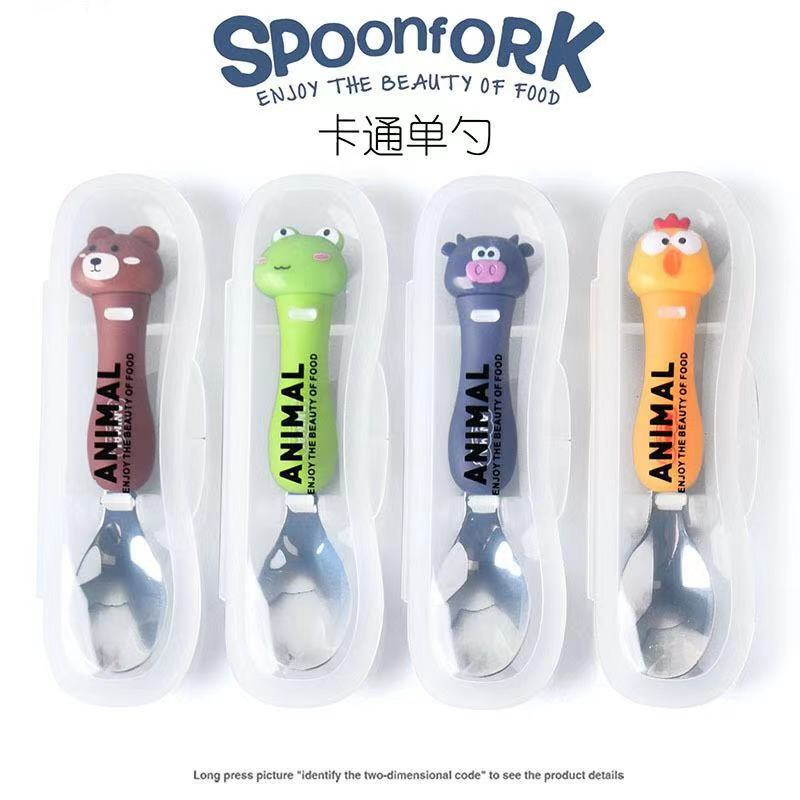漫画子供食器赤ちゃん授乳ステンレス304食器クリエイティブ漫画スプーンポータブルキットボックス