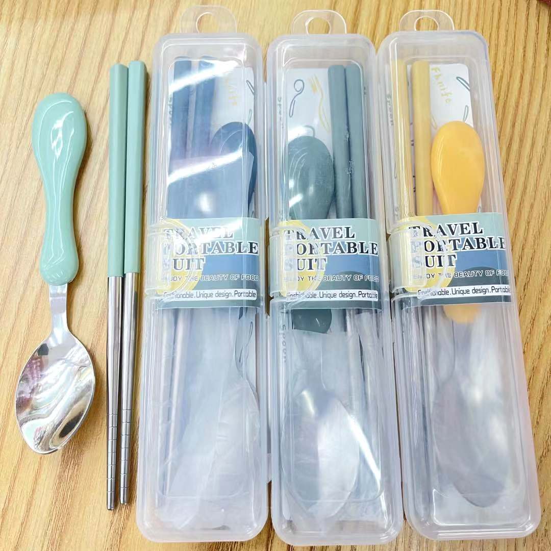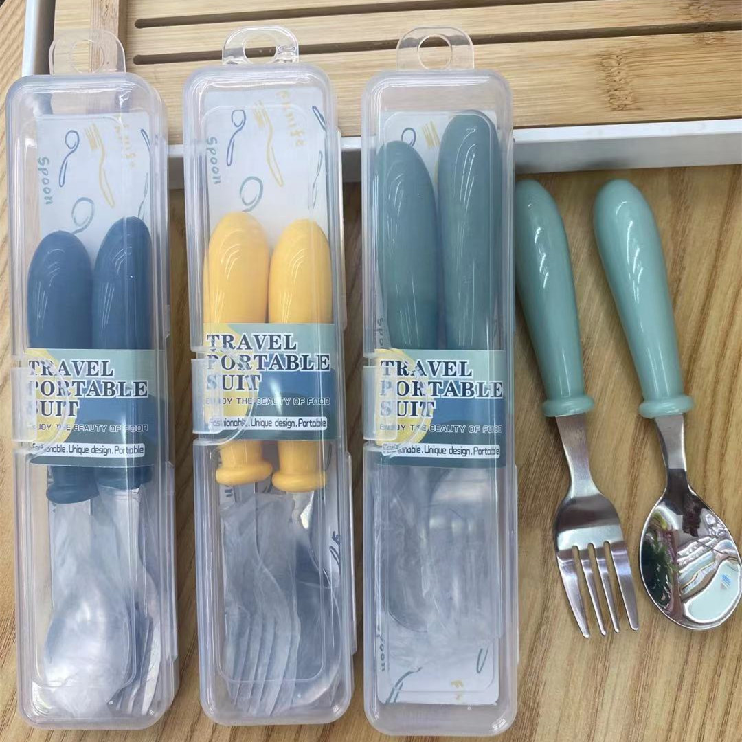 子供用携帯食器2点セット学生304ステンレススプーンフォーク箸旅行屋外ギフト弁当箱