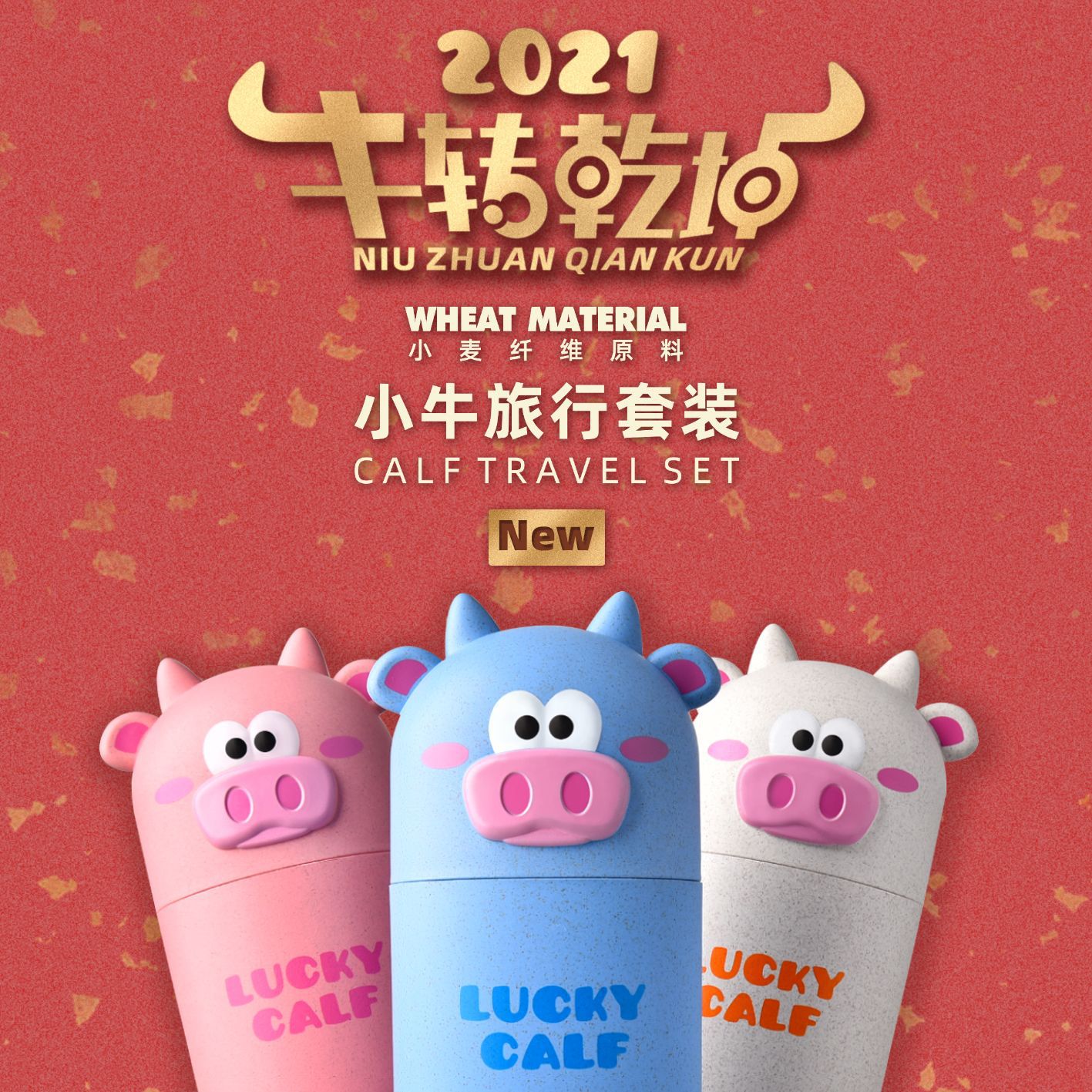 Rb570m子牛旅行セットカトゥーン洗面カップ携帯歯ブラシセット牛年歯ブラシ収納旅行ケース