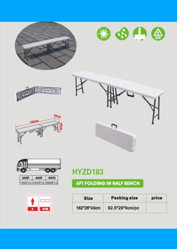 プラスチック折りたたみスツールブロー成形中空スツール面6フィートプラスチックベンチ屋外ピクニックベンチ新型30cm幅