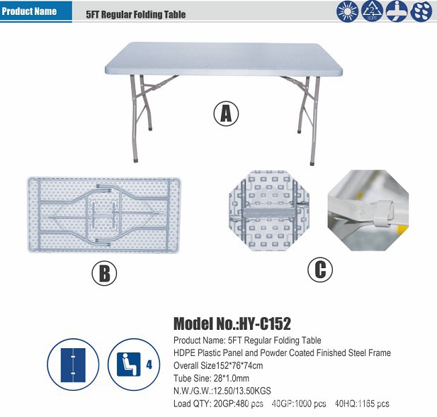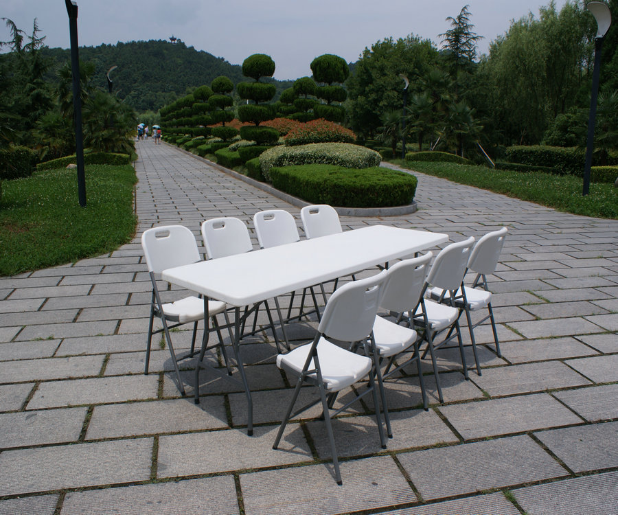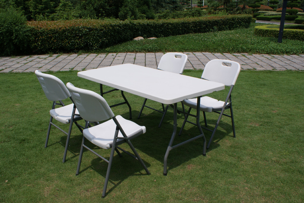 輸出屋外プラスチック折り畳みテーブルピクニックテーブル日焼け耐食5フィート白色プラスチックテーブル