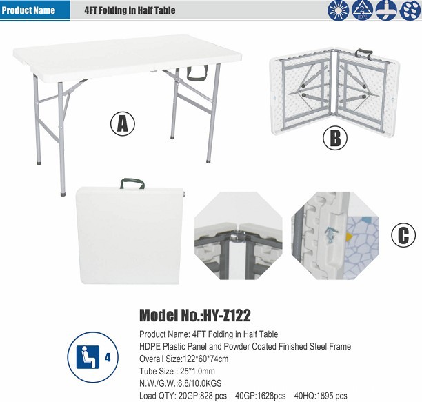 輸出4フィートプラスチック折り畳みテーブル二人用食卓ホテルレストラン屋外携帯耐久性