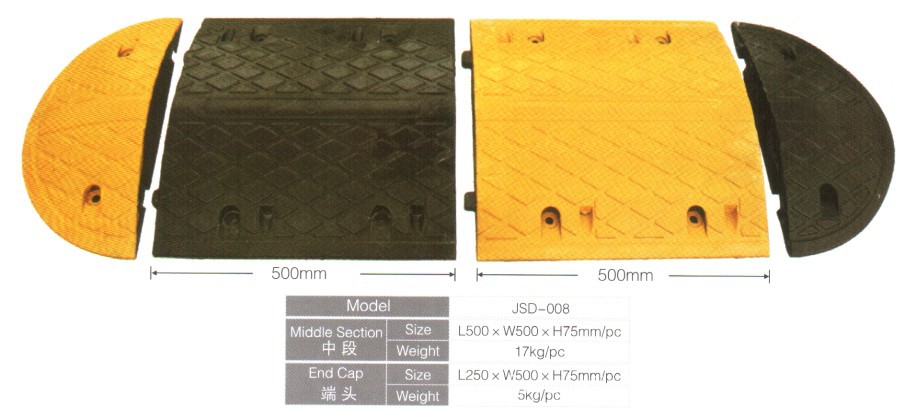 ゴム減速帯減速畝拡幅型減速板50*50*7.5cm 50cm幅減速帯
