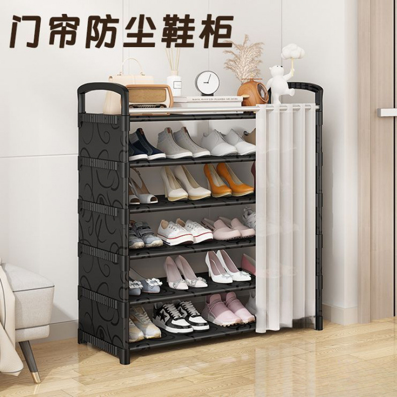 玄関用家庭用靴ラック、防塵多層シンプルで耐久性のある靴キャビネット、遮光カーテン付き屋内用の新しい頑丈な収納ラック