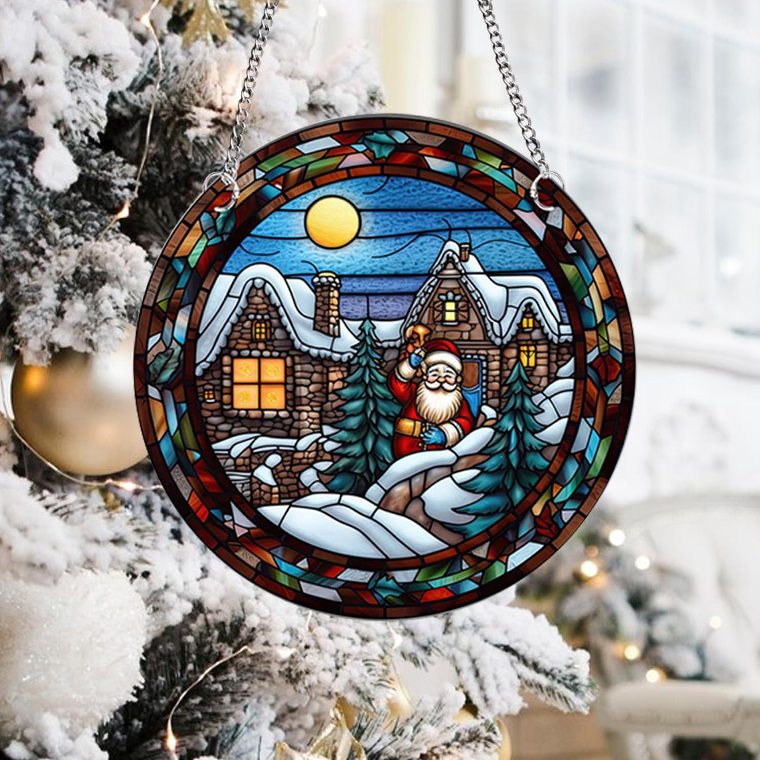 クリスマスアクリル窓吊り雪だるまヘラジカ捕光器ストラップギャラリー壁装飾鉄鎖付き