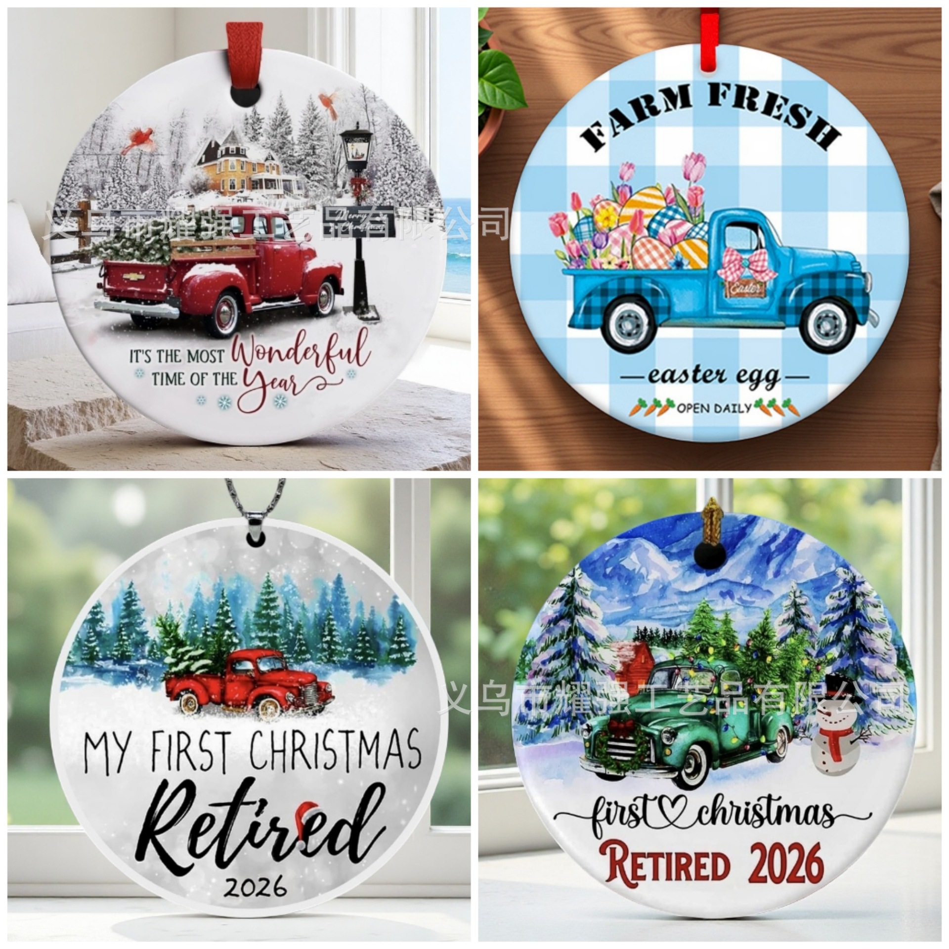 アマゾン熱昇華陶磁器クリスマスペンダント飾り空白熱転写クリスマス陶磁器ペンダント3インチ円形