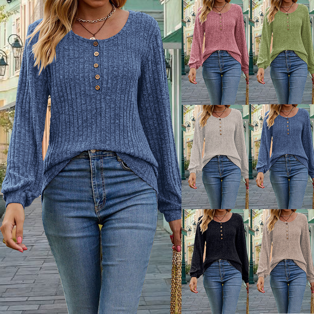 Amazonクロスボーダーヨーロッパとアメリカの貿易2025新しい秋と冬の女性のニット長袖ファッションボタンカジュアルトップス女性用
