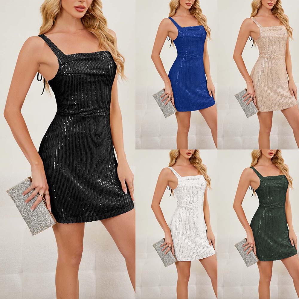 アマゾンクロスボーダー欧米対外貿易2025春夏新作女装スパンコールセクシーワンピース不規則スカート