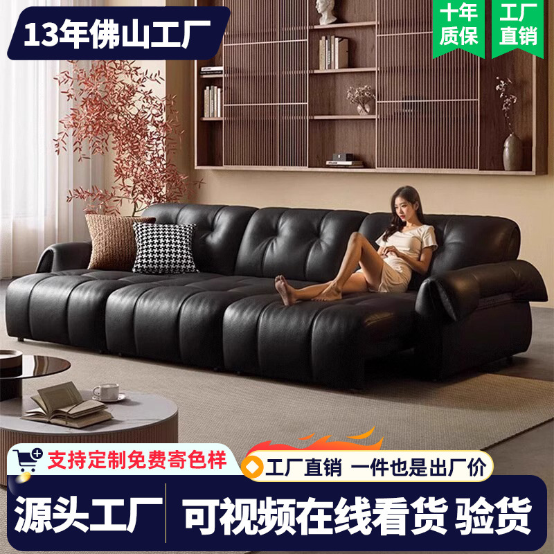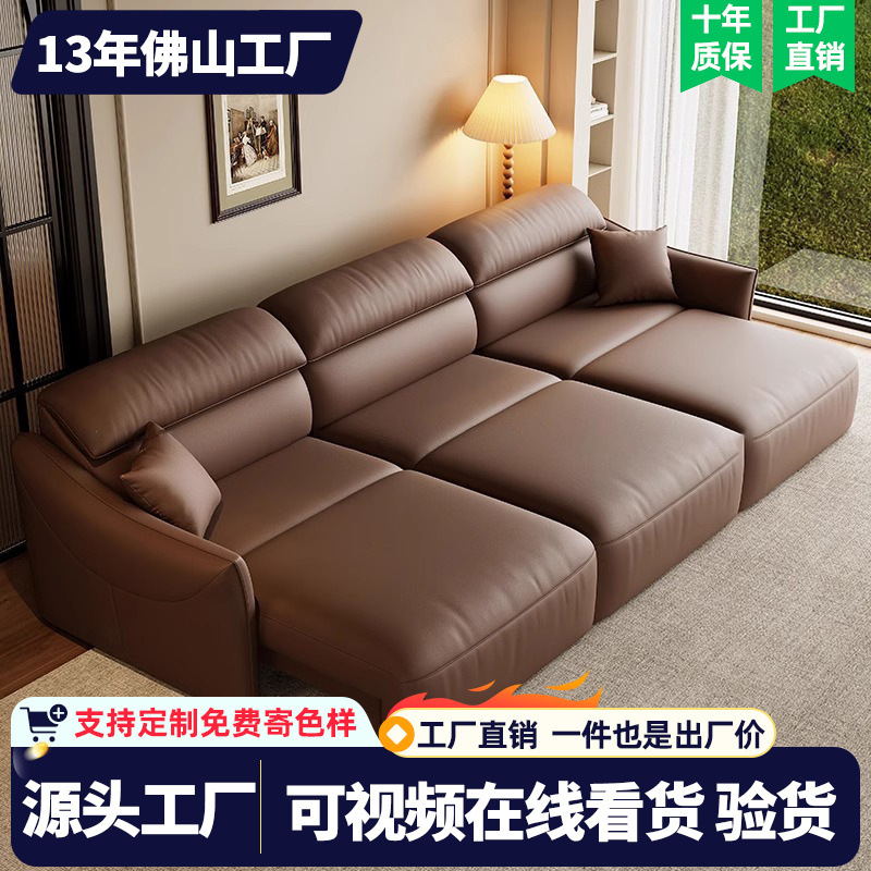 佛山ソファイタリアのミニマリスト多機能電気レザーリビングルームミッドセンチュリースタイル格納式ストレートレザーソファベッド