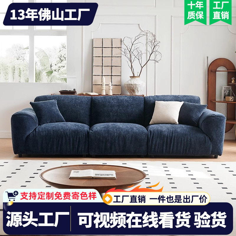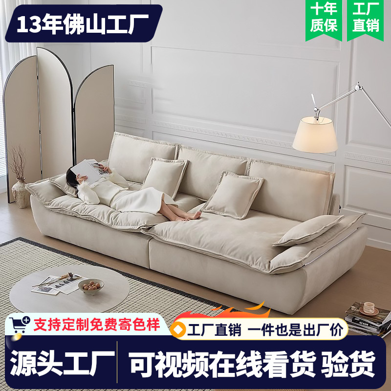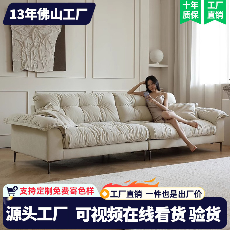 オークランドヨットソファー猫爪布移動可能背もたれ超深座り広客間現代軽贅沢ストレートクリーム風