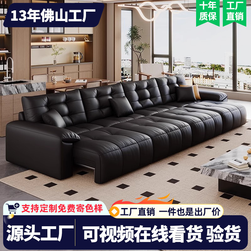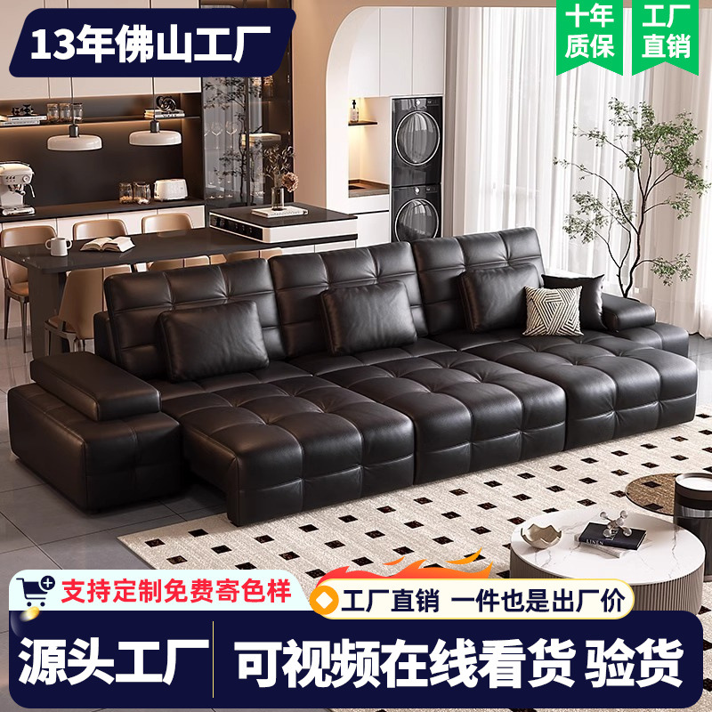 極簡納図電動ピアノ鍵ソファハイエンドツリビングストレート伸縮調節多機能本革ソファ