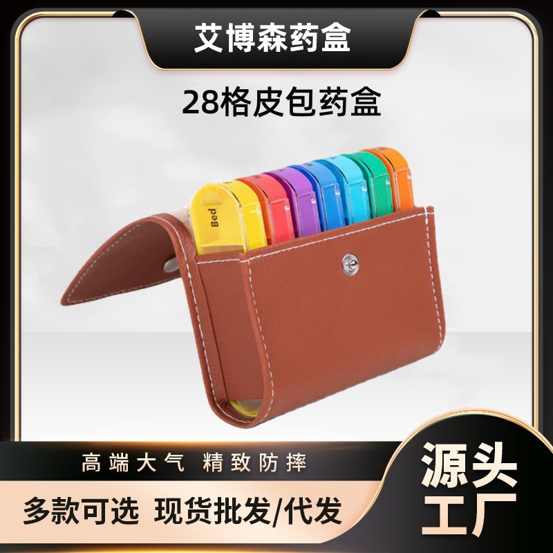 2020新型メーカー直販28格カラー角皮挟み薬箱携帯旅行薬箱皮包み薬箱