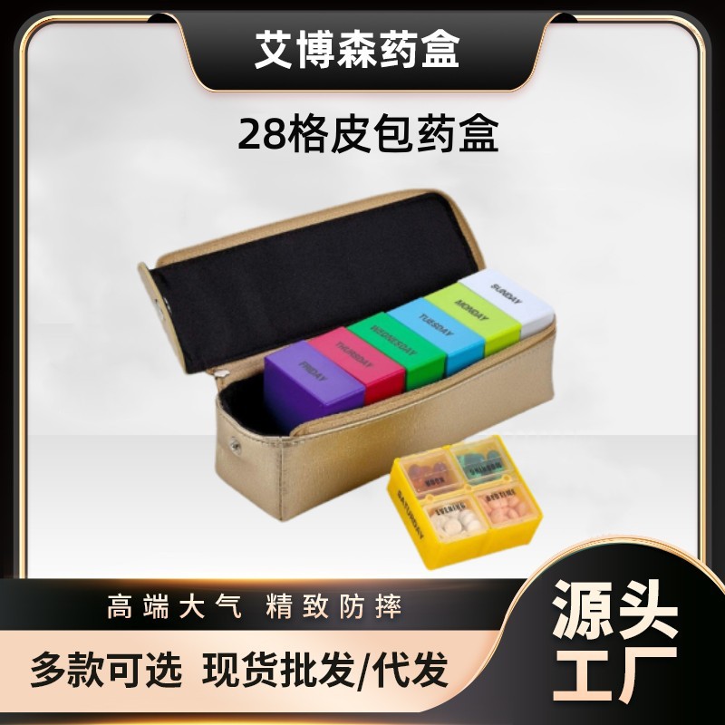 メーカー直販艾博森7色虹皮包28格薬箱ノート薬箱皮挟み薬箱