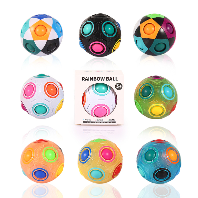 クロスボーダー益智ハンドヘルド12穴のサッカーのルービックキューブは虹のボールのルービックキューブの趣味の夜光のジャイロの虹のボールのおもちゃを押します。