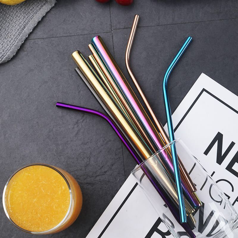 クロスボーダー直売食品級304ステンレスストローセットステンレスカラー金属ストロー