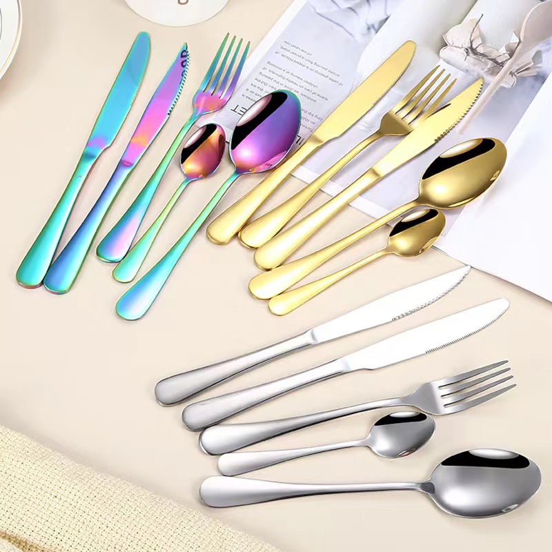 国境を越えたアマゾン1010ステンレス食器ナイフフォークスプーン4点セット洋食ステーキナイフフォーク金メッキ食器セット