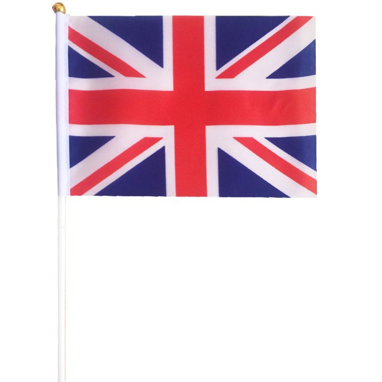 国境を越えてイギリス国旗14*21cmポリエステルシルク印刷ukイギリス手振り旗を供給する