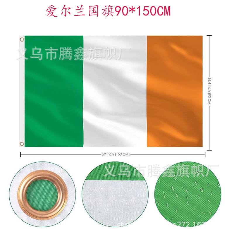 国境を越えた供給アイルランド国旗 90*150 センチメートル 3*5 フィートスクリーン印刷ポリエステル布 No. 4 アイルランド旗