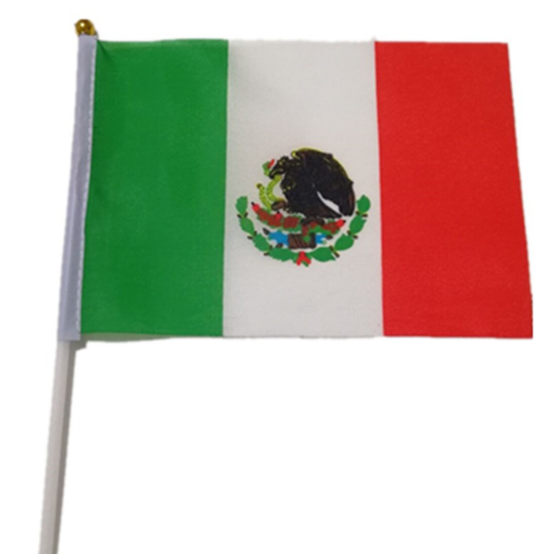 メーカーはメキシコ国旗14*21cm手振り旗シルクスクリーン印刷春亜紡8号メキシコ旗を供給している