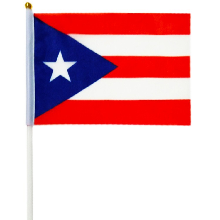 越境供給プエルトリコ旗 14*21 センチメートル手回し旗スクリーン印刷春亜紡績プエルトリグ旗ハンドヘルド