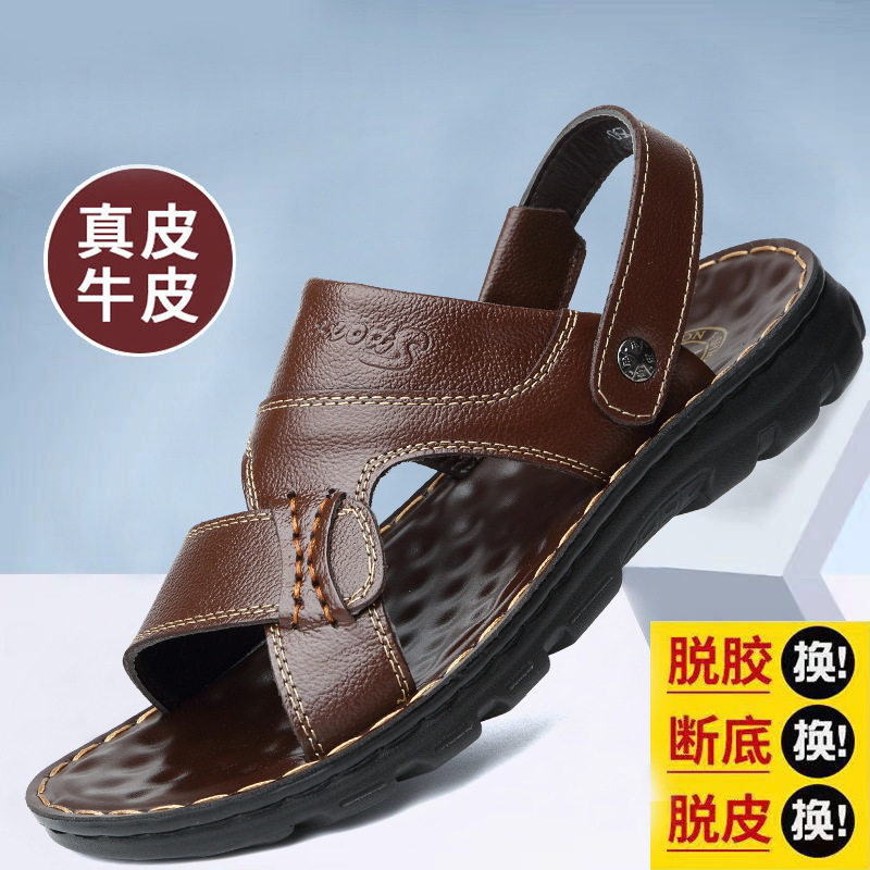2021新型ヘッド牛革カジュアル滑り止めビーチ靴夏男性ソフト底ファッショントレンド厚い底サンダル